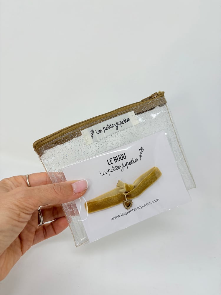 - Un bracelet velours et sa breloque coeur en acier inoxidable plaqué or.