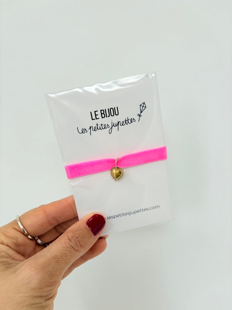 Bracelet ENFANT ruban velours élastique et breloque Coeur ex-voto