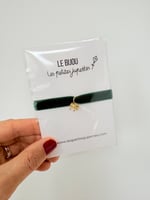 Un joli bracelet monté par mes soins avec un ruban velours élastique très pratique pour le mettre et l'enlever facilement (ne pas le laver avec ni se baigner) ainsi qu'une jolie breloque.