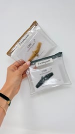 Un joli ensemble composé d'une pochette transparente pailletée petit format ainsi qu'un bracelet avec lien en velours élastique. Modèle adulte.