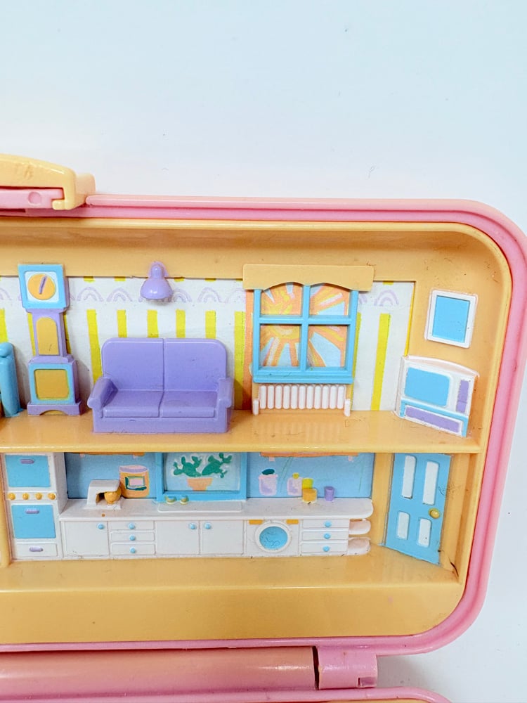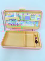 Il s'agit ici du Polly Pocket Boite à bijoux saumon. Il est vendu avec un personnage et un chien qui ne sont pas d'origine. La boite est décolorée à l'extérieur mais toujours belle à l'intérieur. Parfaite pour jouer et stocker ses petits trésors.