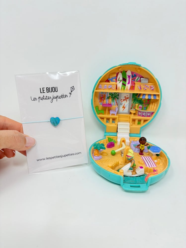 Il se compose d'un Polly Pocket vintage et d'un bracelet enfant assorti réalisé par mes soins.