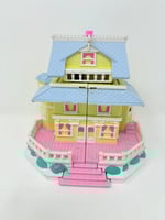 Il s'agit ici du Polly Pocket Le club House. Il est quasiment complet. Il est vendu avec tous ses personnages d'origine et même la petite Jupe ! Avec plein d'accessoires. La maison monte et bougeant les arbres qui sont derrière. Génial pour jouer des heures !