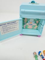 Il s'agit ici du Polly Pocket Horloge Mint Complète qui fonctionne encore ! Une superbe pièce rare dans cet état ! Elle a ses 4 personnages d'origine en parfait état, le cache à l'arrière est présent et en parfait état. Elle n'est pas décolorée et le système fonctionne toujours (livré avec une pile).