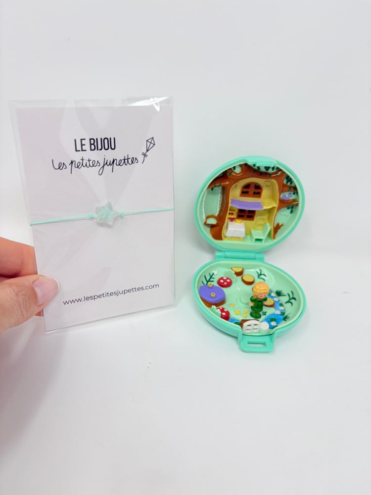 Il se compose d'un Polly Pocket vintage et d'un bracelet enfant assorti réalisé par mes soins.