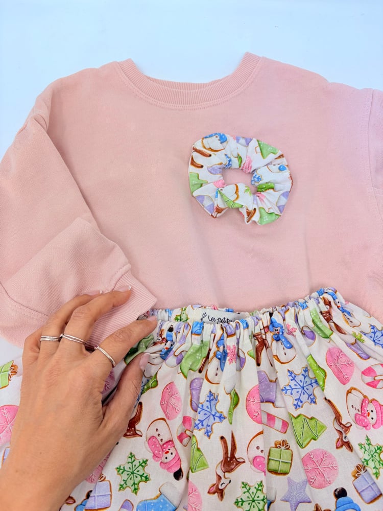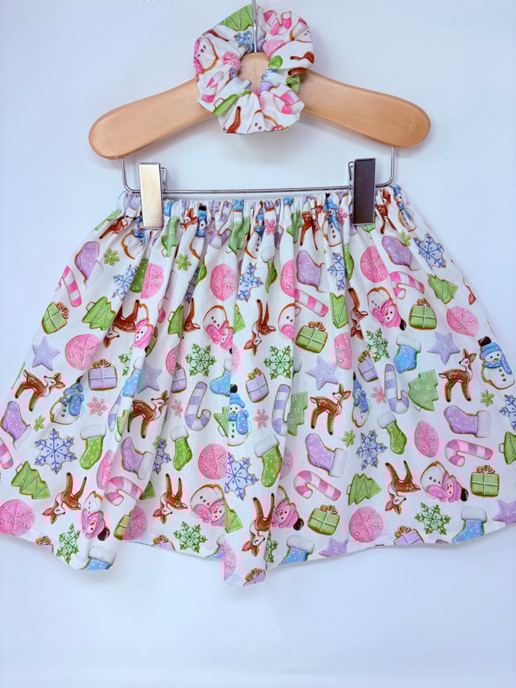 Une magnifique Petite Jupette / Jupe pour les fêtes de Noël. Son tissu coloré original ravira les petites filles fan de rose, parme, bleu ou vert ! On change un peu des couleurs traditionnelles et ça en jette !