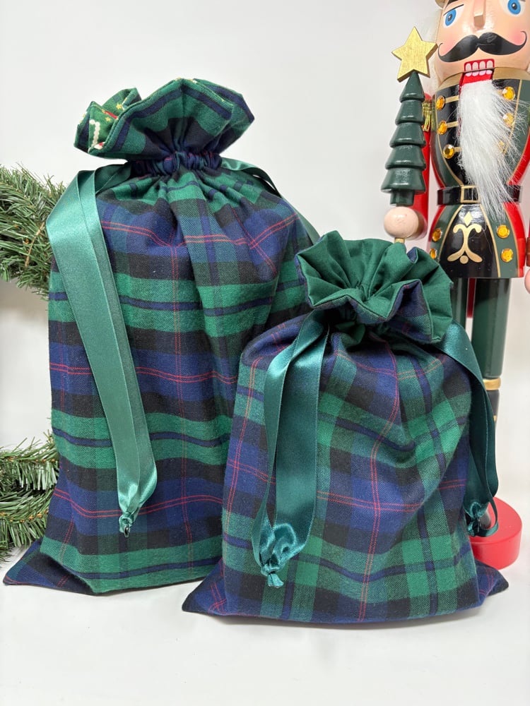 Le Pochon-Cadeau doublé tissu tartan bleu et vert