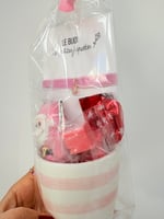 Le Sachet Cadeau tasse à expresso, bracelet et gourmandises rose