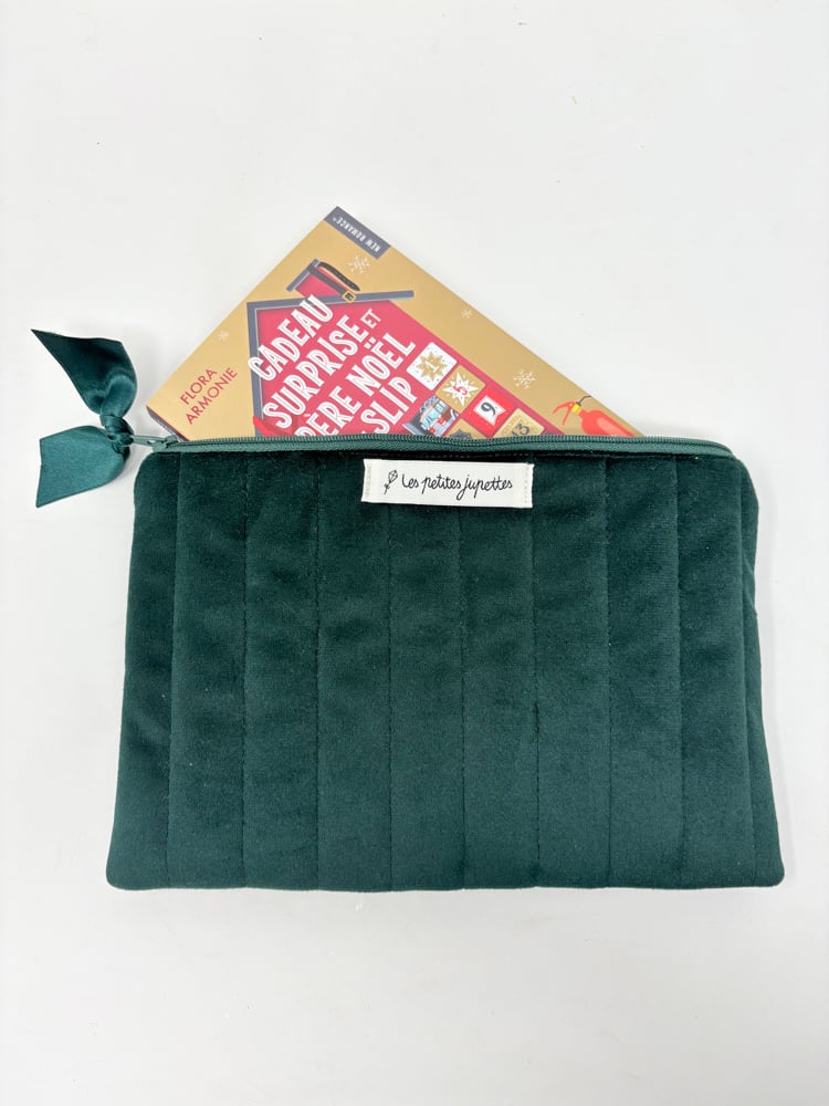 Pochette à livre LA LECTRICE velours matelassé vert sapin